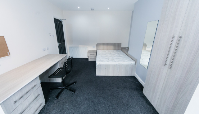 This property offers seven generously sized double bedrooms, each furnished with modern fitted furniture, including a wardrobe, drawers, desk, and double bed. Spread across the ground floor and above, the home also features two contemporary bathrooms and an additional separate toilet for convenience.